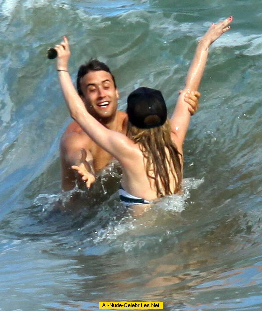 Avril Lavigne nipple slip at Malibu beach paparazzi shots