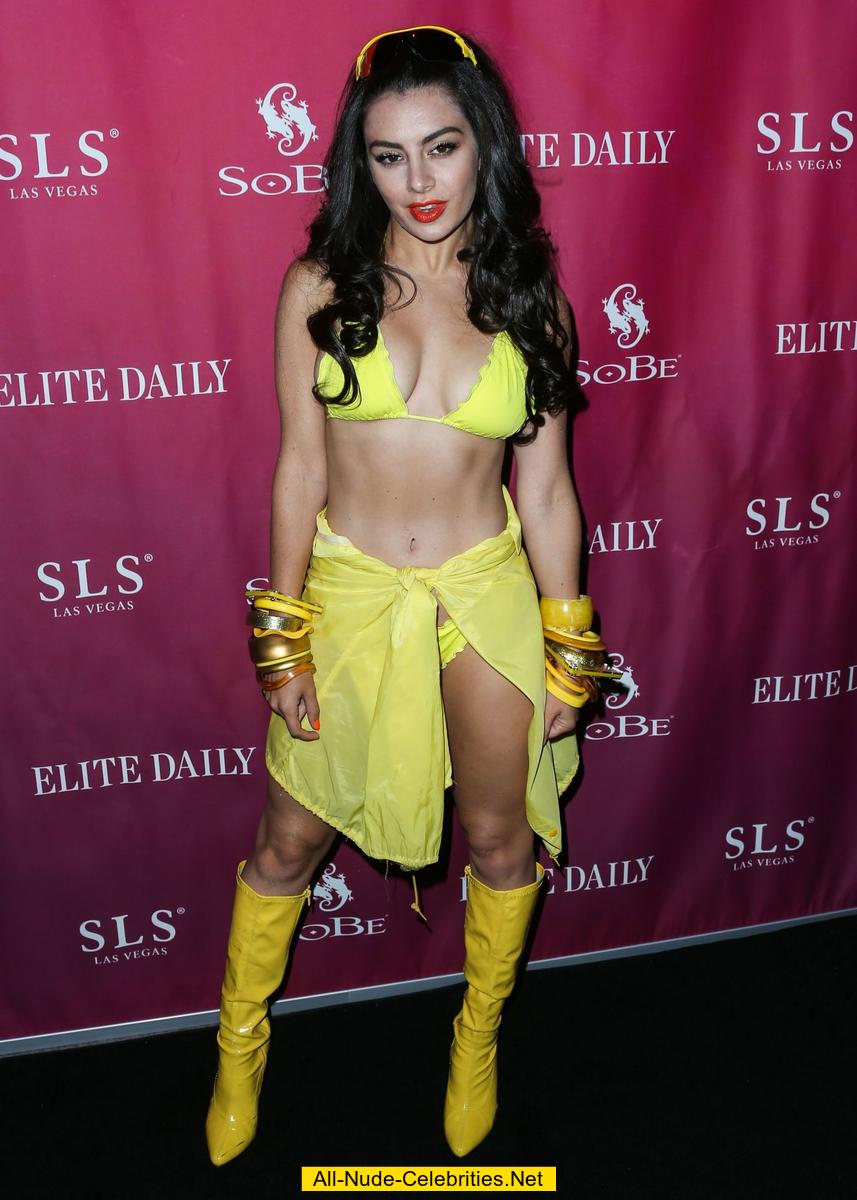 Charli XCX sexy in yellow skirt and bra at the Foxtail SLS SoBe 21st Birthday Bash & Pool Party