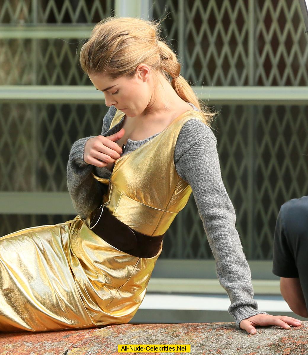 Doutzen Kroes nip slip, on the set of a photo shoot