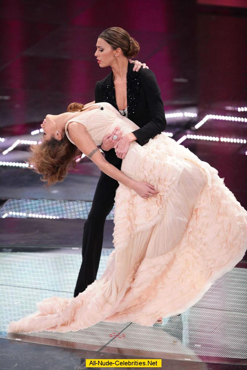 Elisabetta Canalis performing at San Remo Song Festival stage