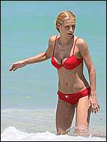 Michelle Hunziker caught in red bikini in Miami beach
